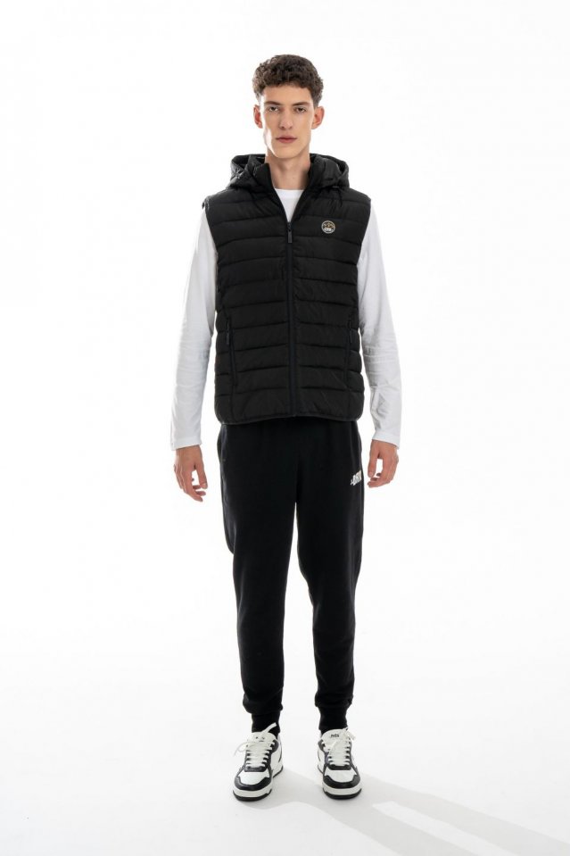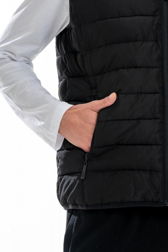 Divatos steppelt férfi mellény a hűvösebb napokra. A teljes lefedettség érdekében kapucnival kiegészítve. Reguláris szabású modell a kiváló mozgásszabadságért. Cipzáras oldalzsebeiben és rejtett belső zsebében értéktárgyak biztonsággal tárolhatóak.