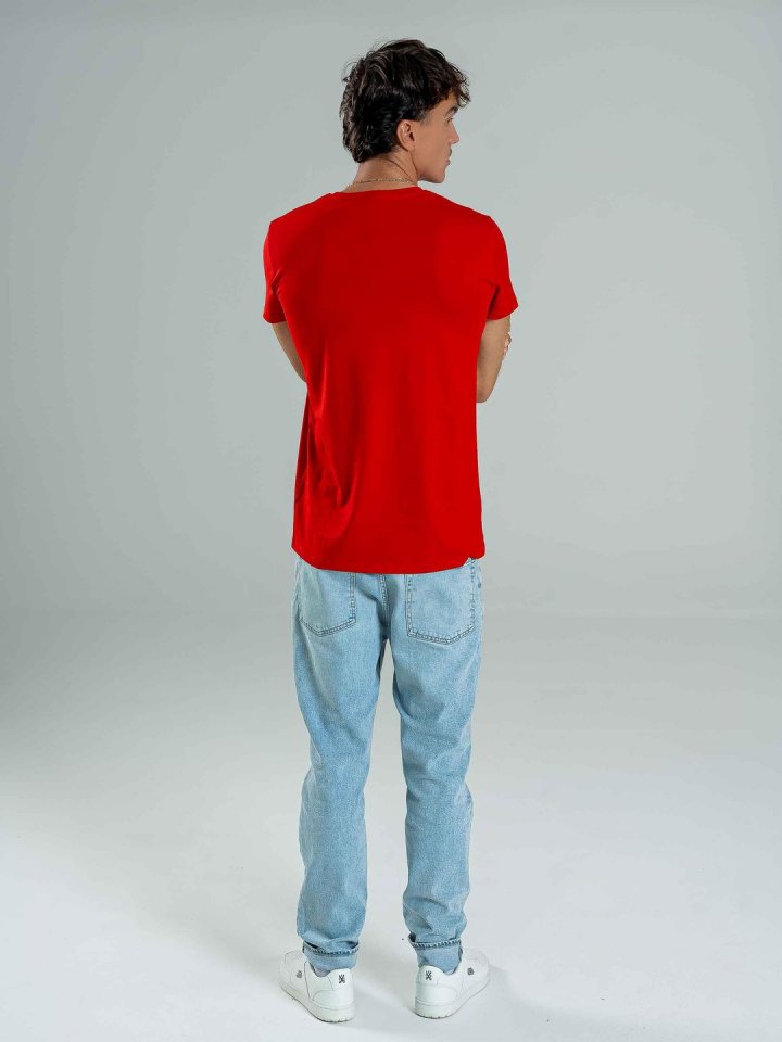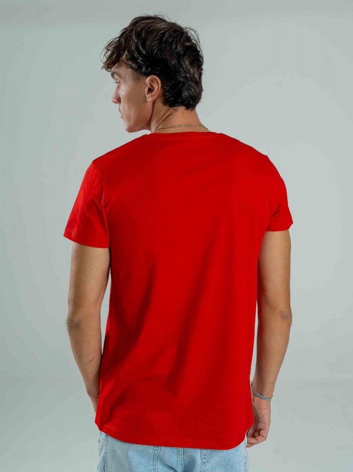 Reguláris szabású környakas férfi póló a klasszikus stílus kedvelőinek. Pamut alapanyaga kényelmet biztosít a meleg napokon is. Ideális választás utcai viseletként, kirándulások-fesztiválok alkalmával.