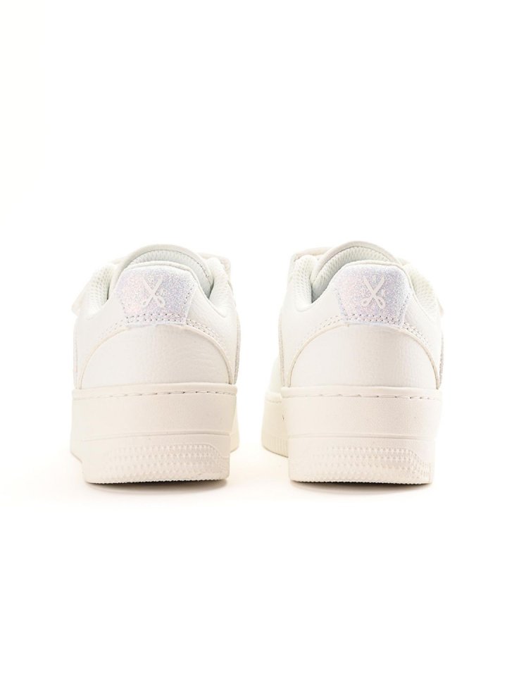 Stilusos gyerek utcai cipő platformra emelve. Letisztult műbőr felső része szellőzőnyílásokkal kiegészítve a kiváló légáteresztésért, puha kényelmes belső résszel a maximális komfortérzet érdekében. Mint minden gyerekcipőnk, ez is tépőzár és gumis fűző keverékével készült, hogy könnyedén felvehessék a kicsik, és biztosítja a kényelmes illeszkedést.