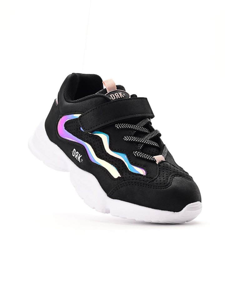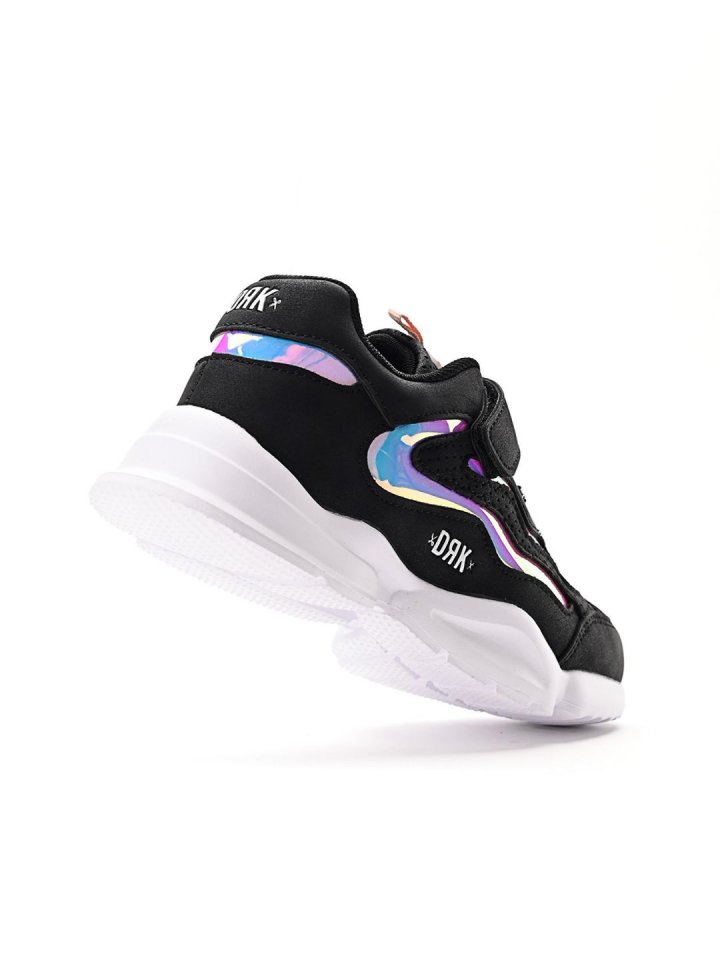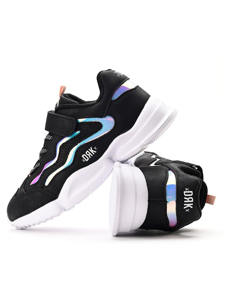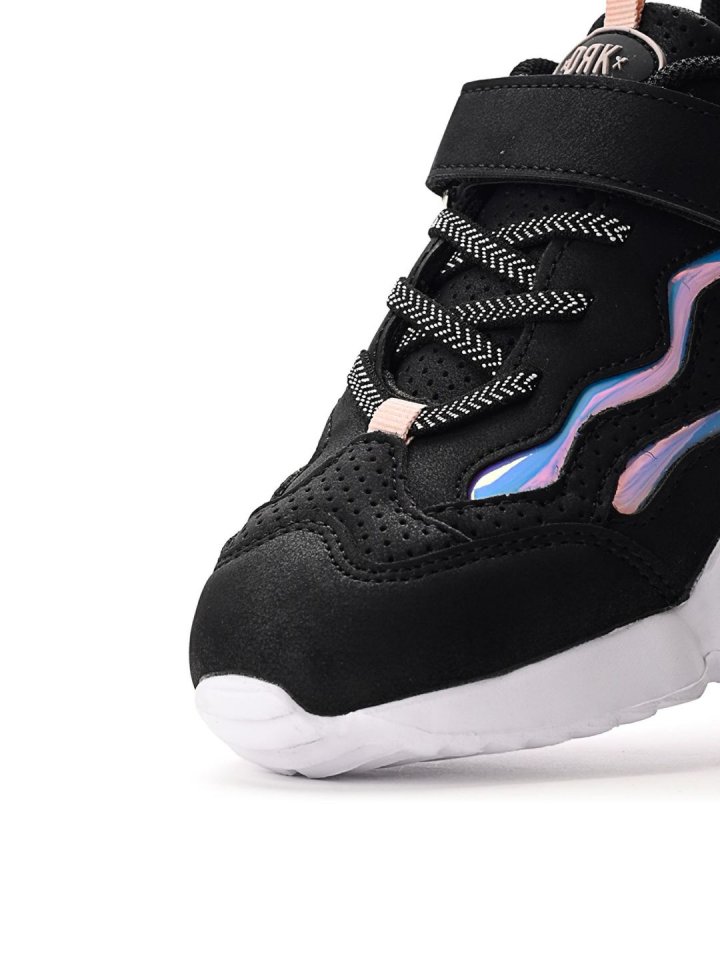 Ívelt mintával díszített "hipnotikus" gyerek utcai cipő. Szintetikus bőr felső része szellőzőnyílásoknak köszönhetően fokozott légáteresztést ezáltal maximális komfortérzetet biztosít. Barázdált könnyű talpa stabilítást nyújt. Rugalmas fűzővel és tépőzáras záródással a könnyű használatért.