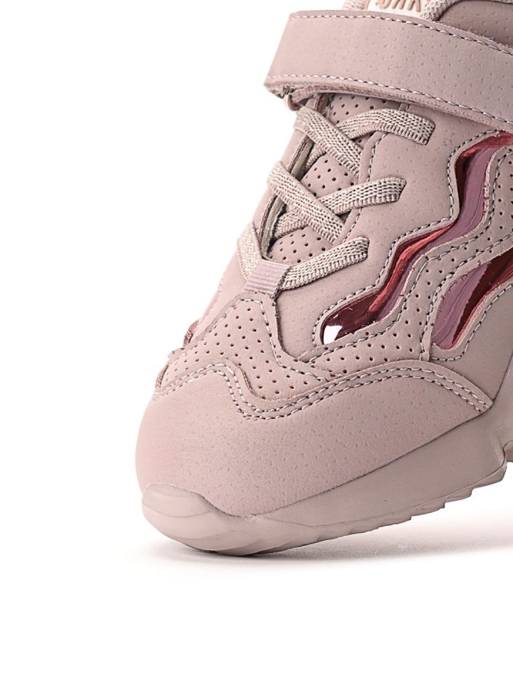 Ívelt mintával díszített "hipnotikus" gyerek utcai cipő. Szintetikus bőr felső része szellőzőnyílásoknak köszönhetően fokozott légáteresztést ezáltal maximális komfortérzetet biztosít. Barázdált könnyű talpa stabilítást nyújt. Rugalmas fűzővel és tépőzáras záródással a könnyű használatért.