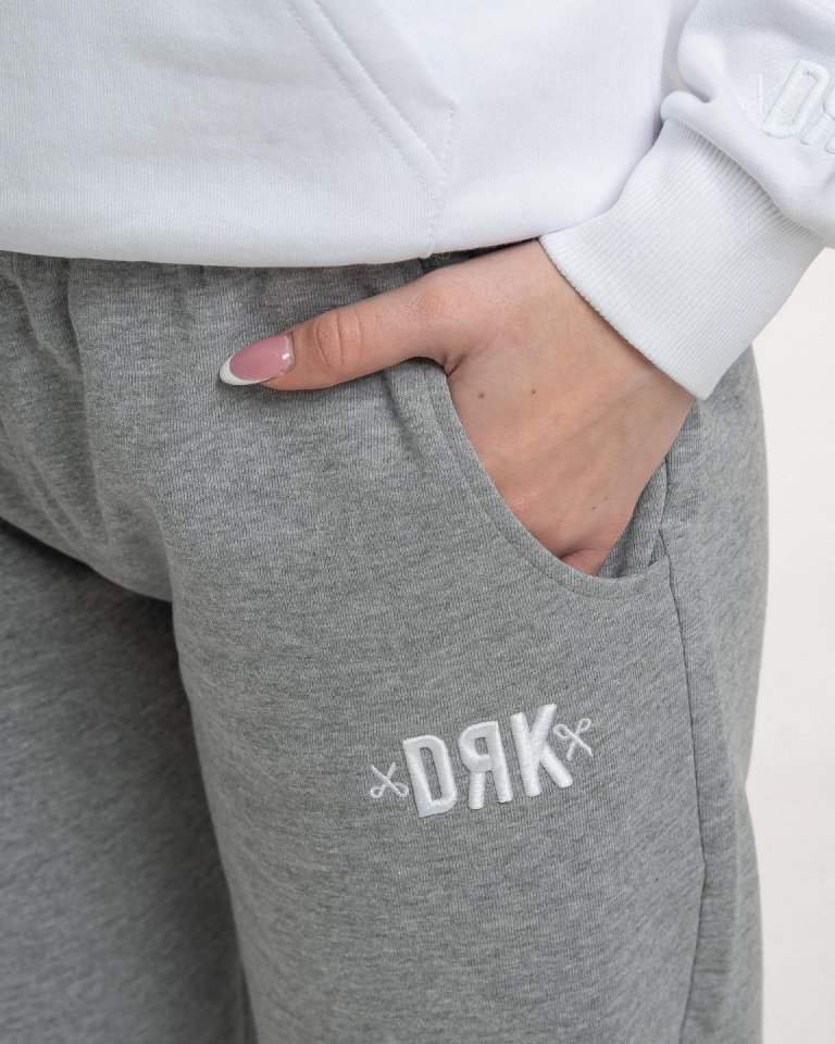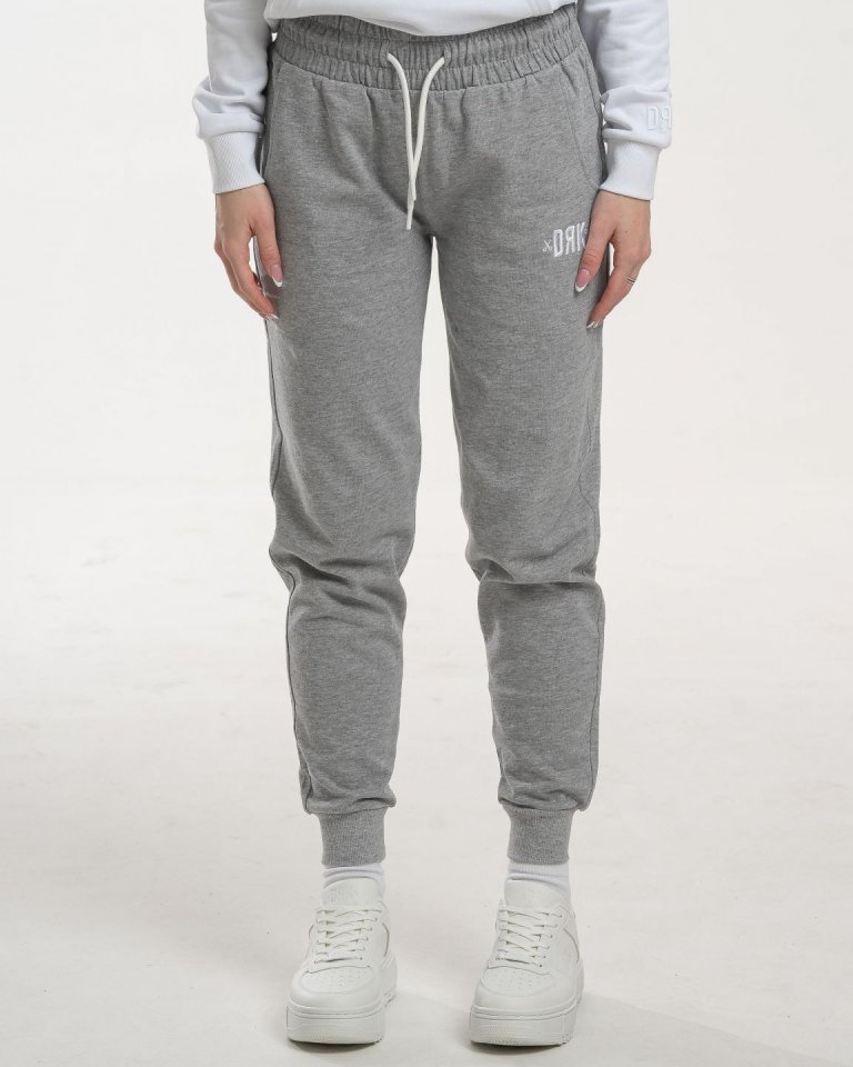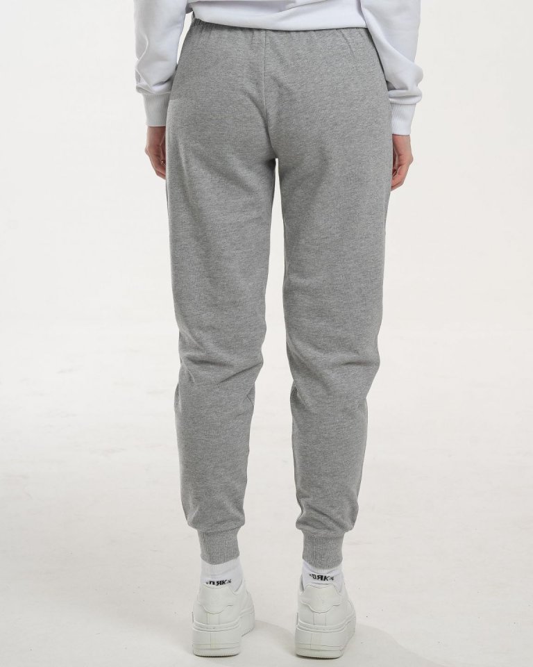 Magas pamuttartalmú divatos női nadrág. Szűkülő szárú, gumis derekú modell. Oldalzsebes, szárvégei széles passzés anyagban végződnek. A nadrágot márkajel díszíti. Kitűnő választás szabadiős tevékenységekhez, sportos utcai viseletként.