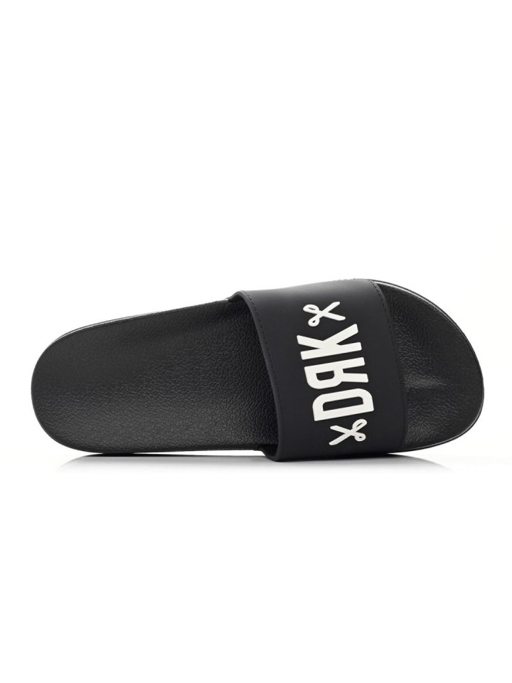 Letisztult stílus kedvelőinek ajánlott női papucs. Talpa texturált a kényelmesebb viselet érdekében, külső talp barázdái csúszásmentességet biztosítanak. Dombornyomott márkajel díszíti.