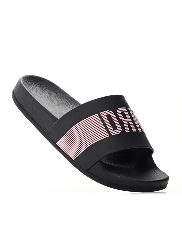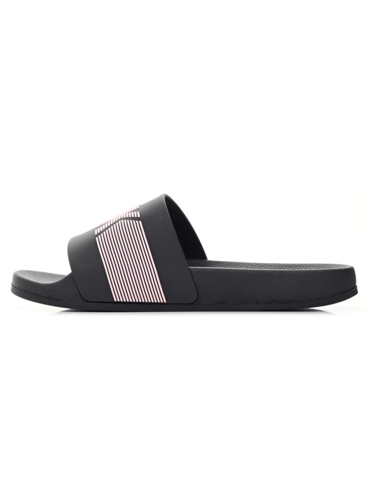 Nagy logóval díszített női papucs, a letisztult stílus kedvelőinek. Texturált talpa kényelmesebb viselést nyújt, míg a külső talp barázdái gondoskodnak a csúszásmentes járásról.