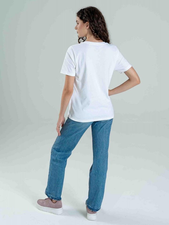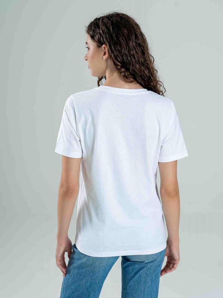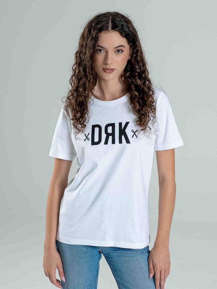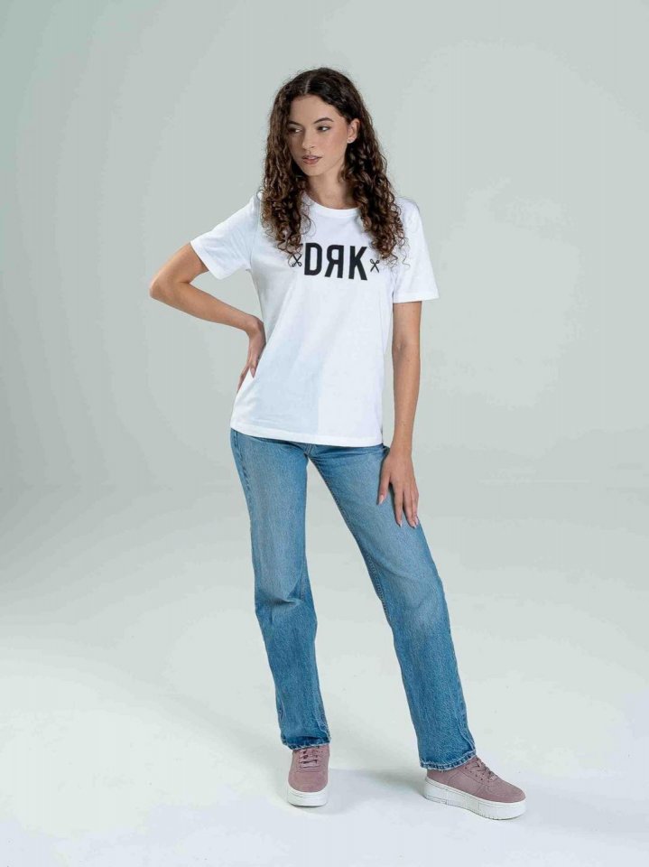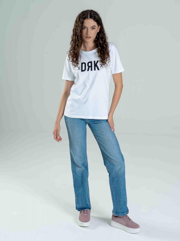 Női póló, mely tökéletes választás a kényelmes és stílusos hétköznapokra. Reguláris szabású modell 100% pamut alapanyagból. Puha, légáteresztő anyaga biztosítja a maximális komfortot, miközben a közepes DRK logó elegáns és modern megjelenést kölcsönöz neki. Ez a póló egyszerű, de mégis figyelemfelkeltő darab, amely könnyedén illeszkedik a különböző stílusokhoz. Ideális választás minden alkalomra, legyen szó egy laza hétköznapi öltözetről vagy egy sportos szettről.