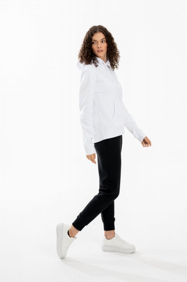 Egyszerű, de nagyszerű klasszikus női pulóver extra magas pamuttartalommal a hűvösebb napokra. Extrán kényelmes, puha tapintású, bolyhozott anyagból készült. Fiatalok egyik kedvence. Reguláris szabása kiváló mozgásszabadságot biztosít, kapucnival és kenguruzsebekkel kiegészített modell. A pulóver elejét és ujját diszkrét Dorko márkajel díszíti.