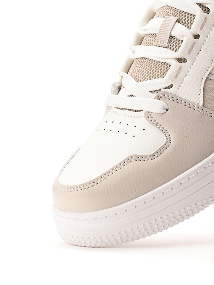 Stílusos fiatalos szintetikus bőr női utcai cipő. Szellőzőnyílásokkal kiegészítve a fokozott légáteresztés érdekében, könnyű EVA középtalp és hi-poly talpbetét a maximális komfortérzetről gondoskodik. Párnázott sarok és gyöngyvászon nyelv a puha kényelemért.