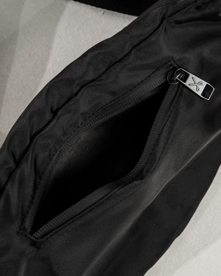 Divatos nagy logóval díszített övtáska értéktárgyak biztonságos tárolására. Cipzáras főrekesze mellett hátulsó kis cipzáras zseb segíti a rendszerezést.