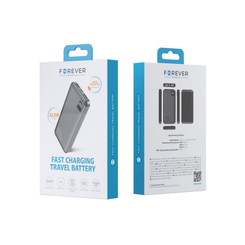 Forever TB300M PD QC 10000 mAh 22,5W Powerbank, Gyors Töltés Fekete